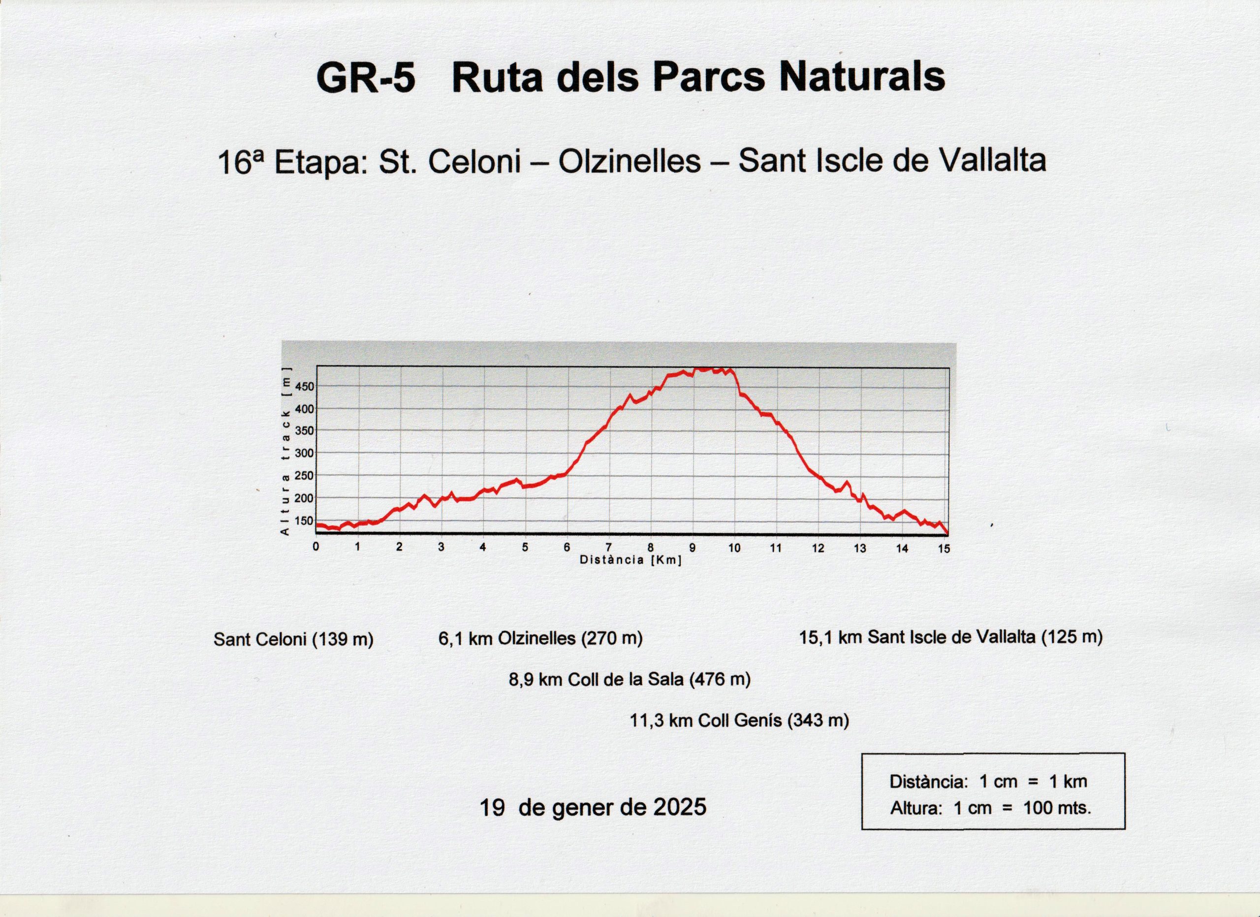 En aquesta etapa del GR-5 que organitza la Secció de Senderisme d’Amics d’El Prat, i que tindrà lloc el diumenge 19 de gener de 2025, anirem a peu des de Sant Celoni fins a Sant Iscle de Vallalta, en total seràn 15,1 km.